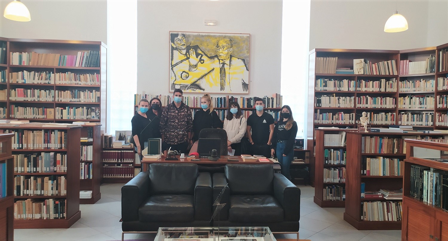 En el interior de la biblioteca (construida en 2006) siguió para los estudiantes el descubrimiento de la humanidad que este espacio alberga. El respeto a cada uno de los volúmenes que representa a su autor, las estanterías dedicadas exclusivamente a las mujeres creadoras, el primer libro que le regaló al literato su madre, la foto entrañable de su abuela Josefa y el moderno retrato de Saramago y su mujer, Pilar del Río, hecho con humo de vela y pintura amarilla por el pintor checo Jiri Dokoupil.